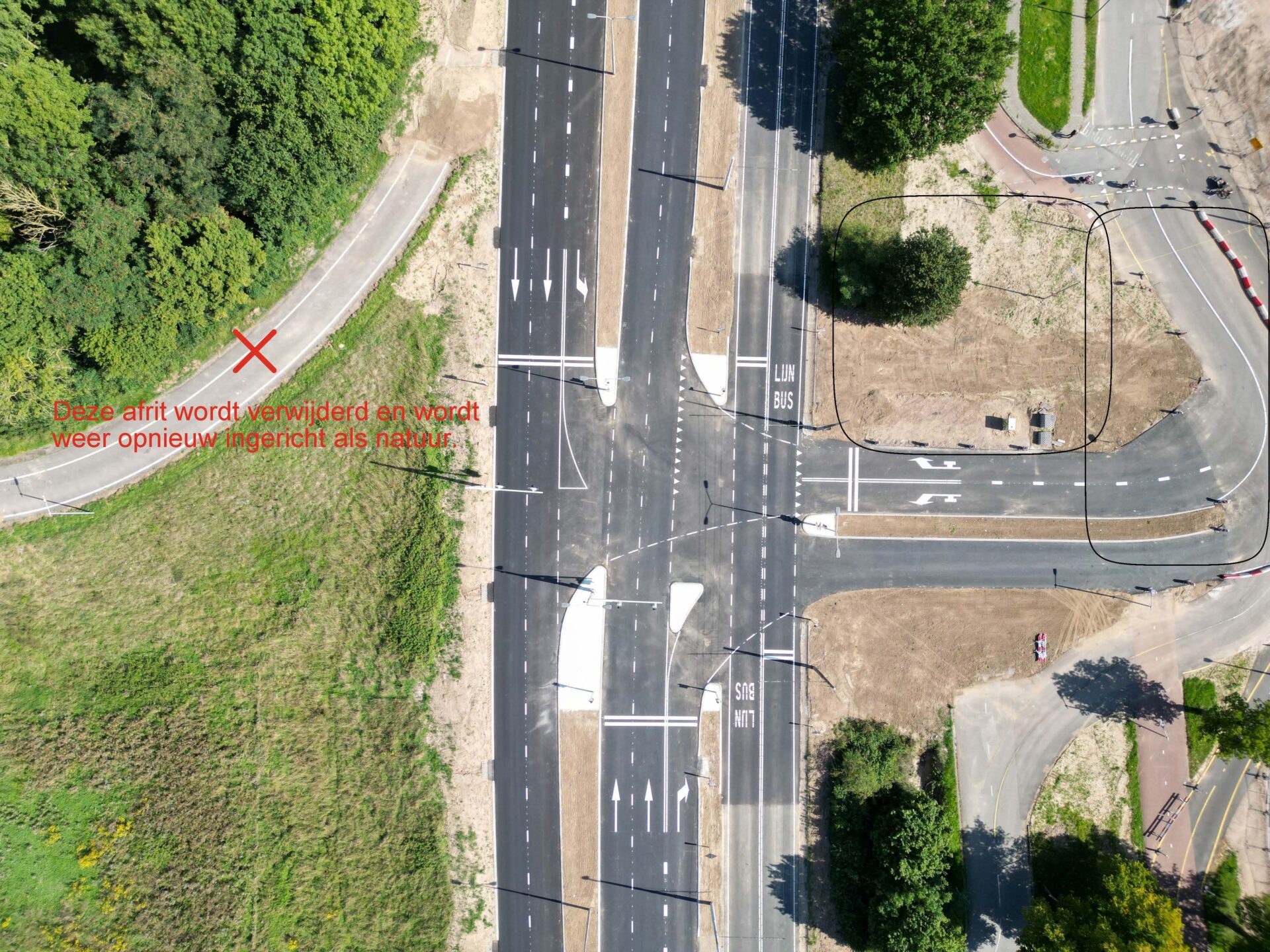 Vanaf 23 oktober a.s. zal het asfalt van deze voormalige afrit worden verwijderd en wordt het stukje terrein weer ingericht als natuur. Ook wordt het voetpad verbonden van de Praets richting de parkeerplaats onder de brug.